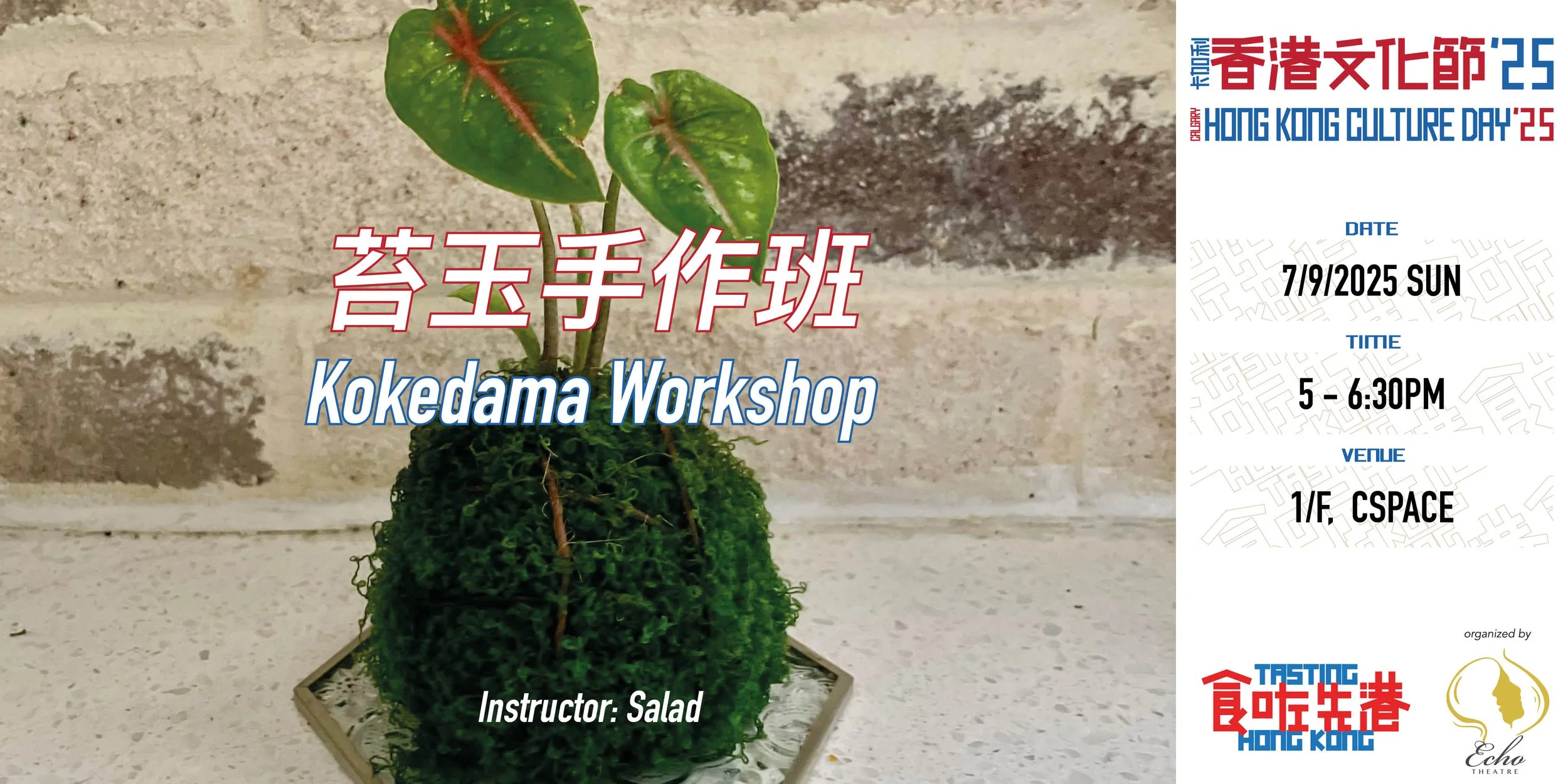 在這個工作坊裡,導師將帶領大家學習 苔玉(Kokedama) 的技巧,親手製作一個綠植藝術作品。苔玉是源自日本的植物手作,能將大自然的清新氣息帶進家中,既是裝飾,也是療癒心靈的藝術。